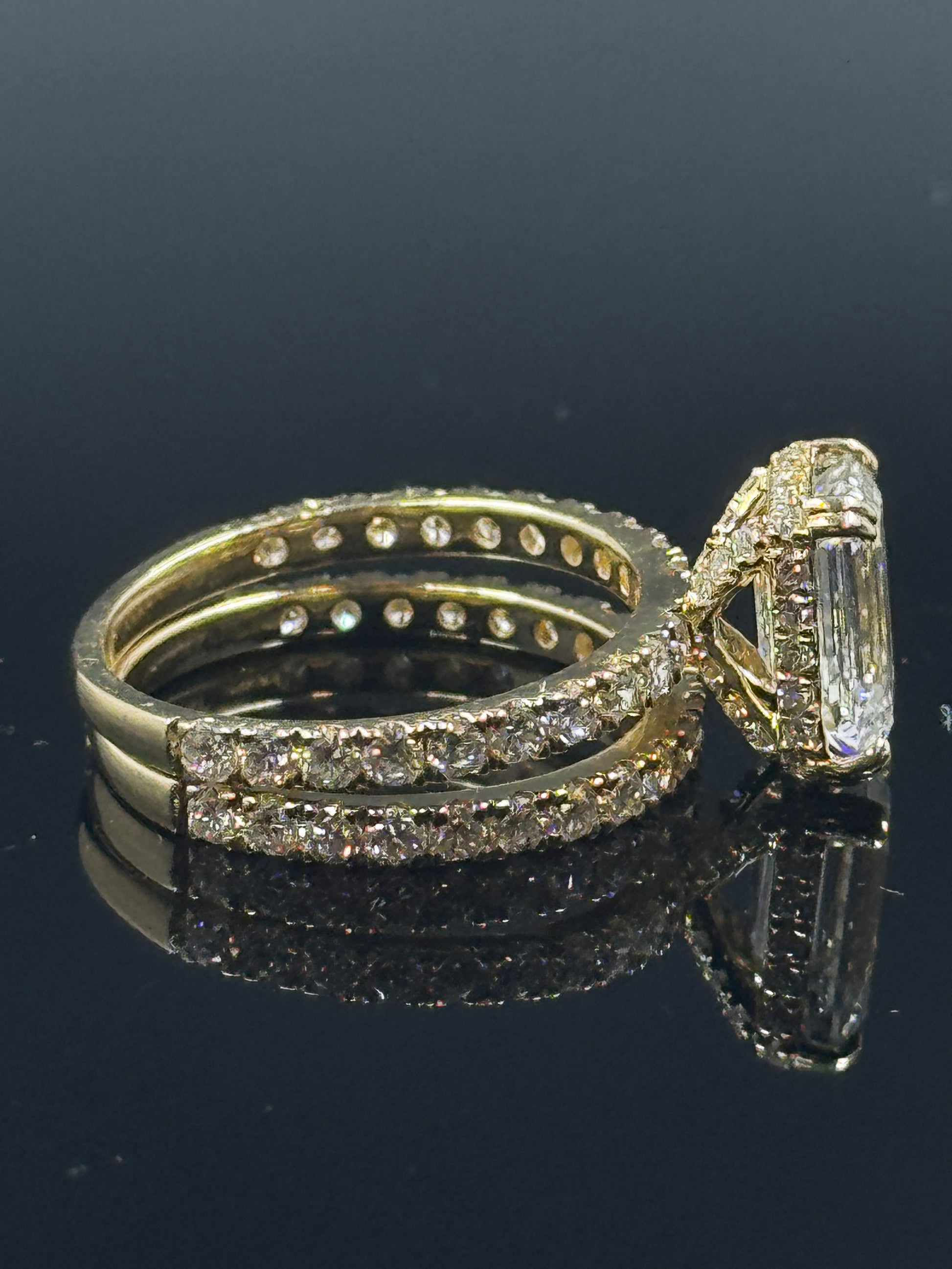 14k Yellow Gold Emerald Diamond Bridal Set – 3.90ctw, Size 7