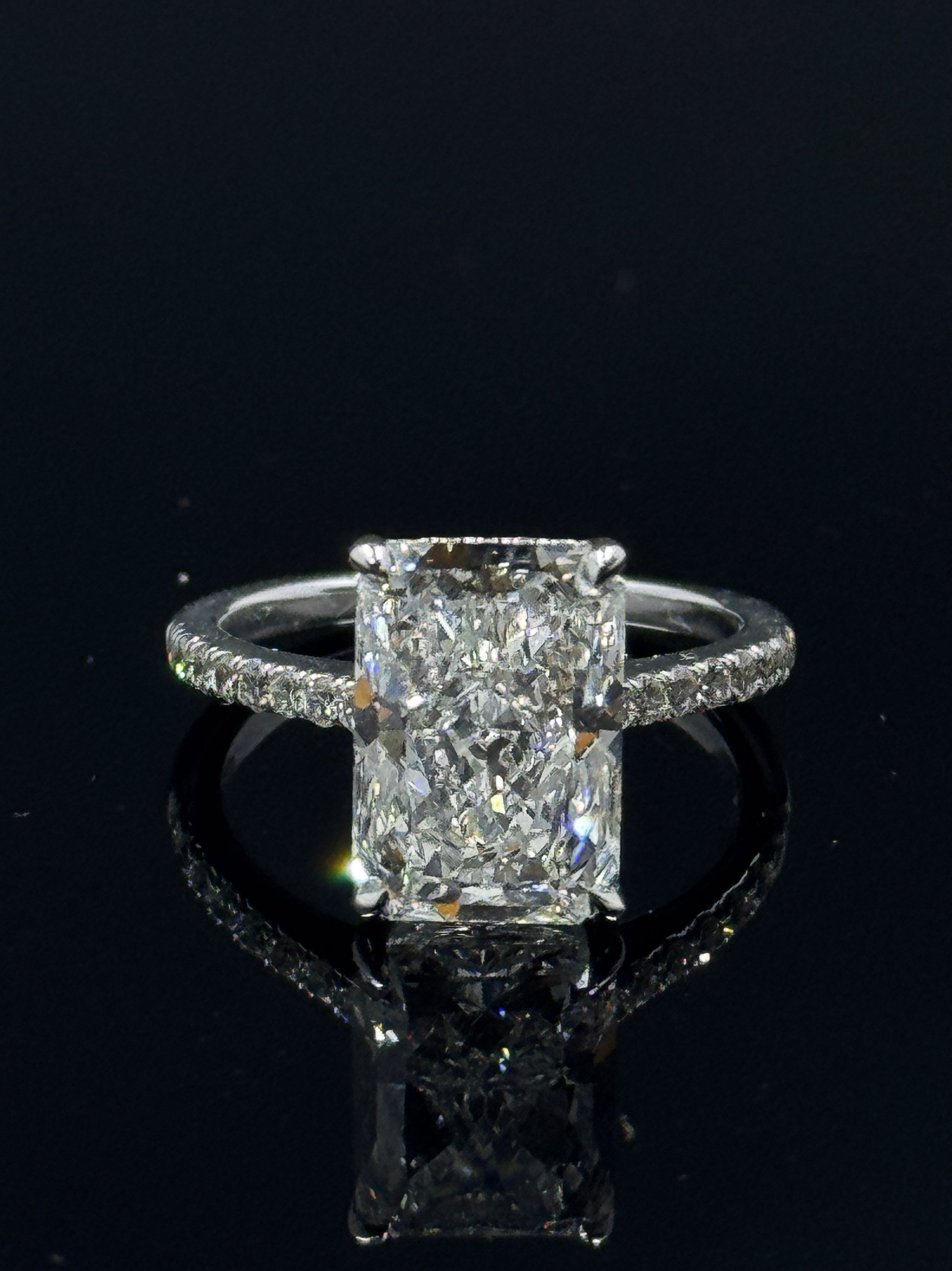 14k White Gold Lissome Radiant Diamond Engagement Ring – 4.84ct, Size 7