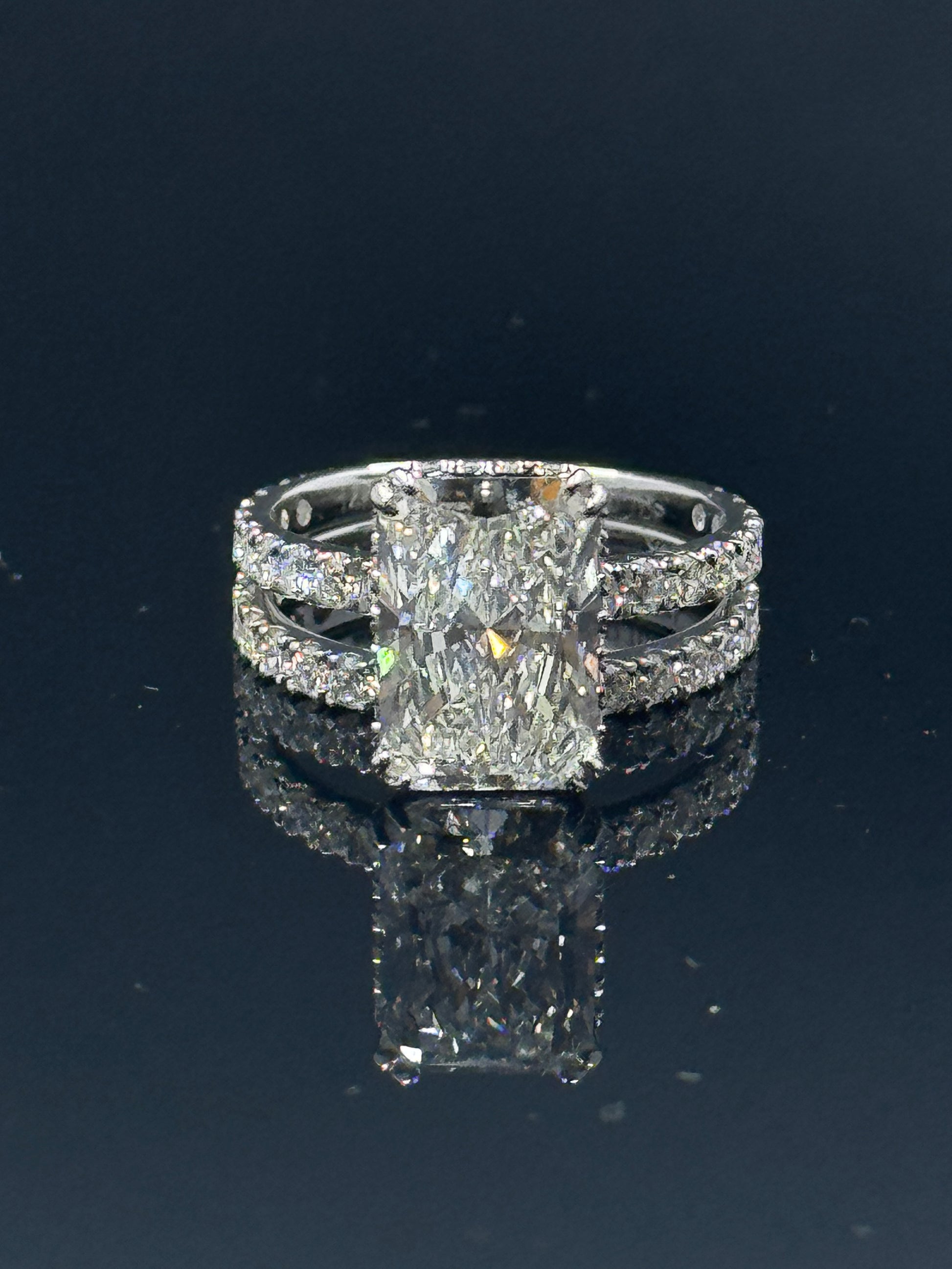 - Center Stone: 4.06ct Radiant-Cut Lab-Grown Diamond (E VS1, EX/EX, None)