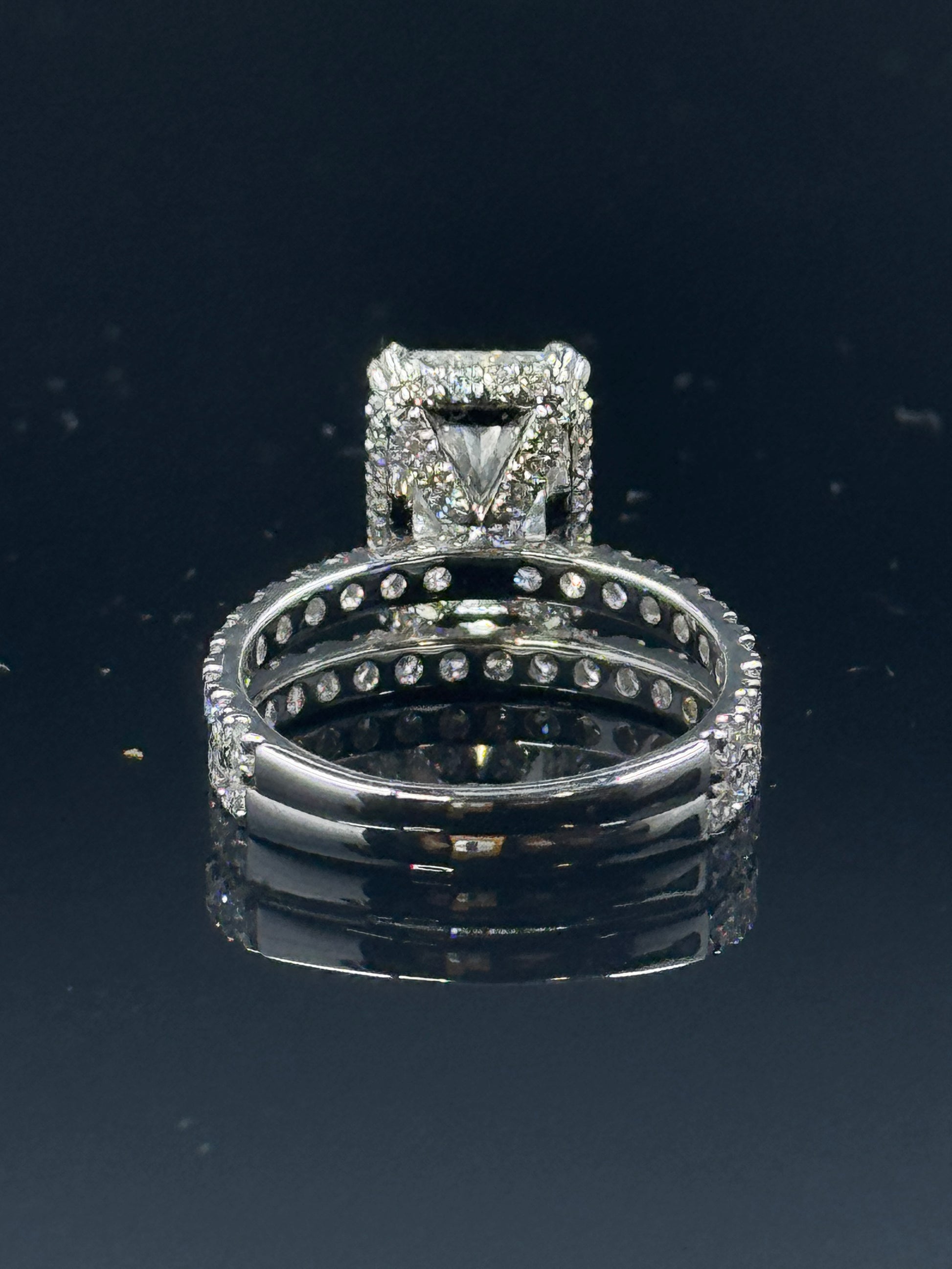A breathtaking symbol of forever — this radiant-cut diamond bridal set features a dazzling engagement ring paired with a perfectly matched eternity band. Crafted in solid 14k white gold (4.98g), it blends timeless design with exceptional sparkle.