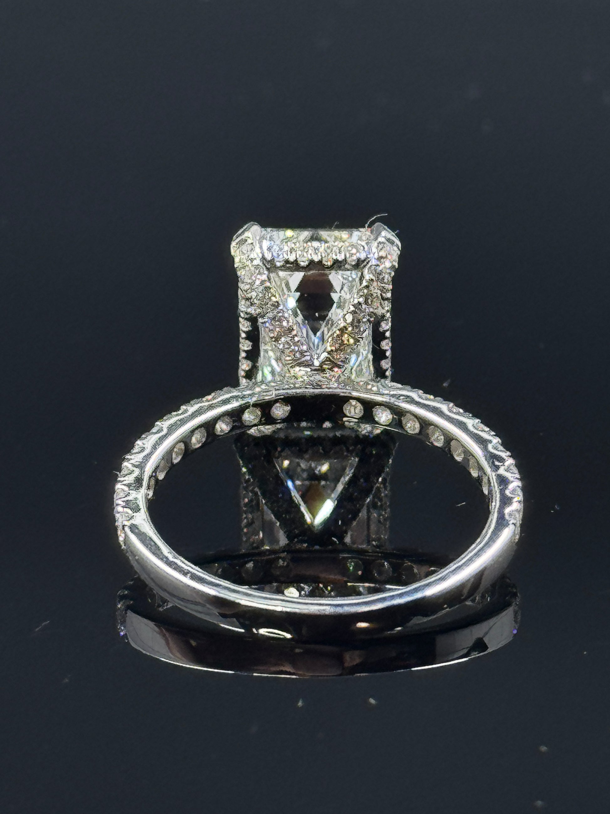- Center Stone: 4.86ct Emerald-Cut Lab-Grown Diamond (E VVS2, EX/EX, None)